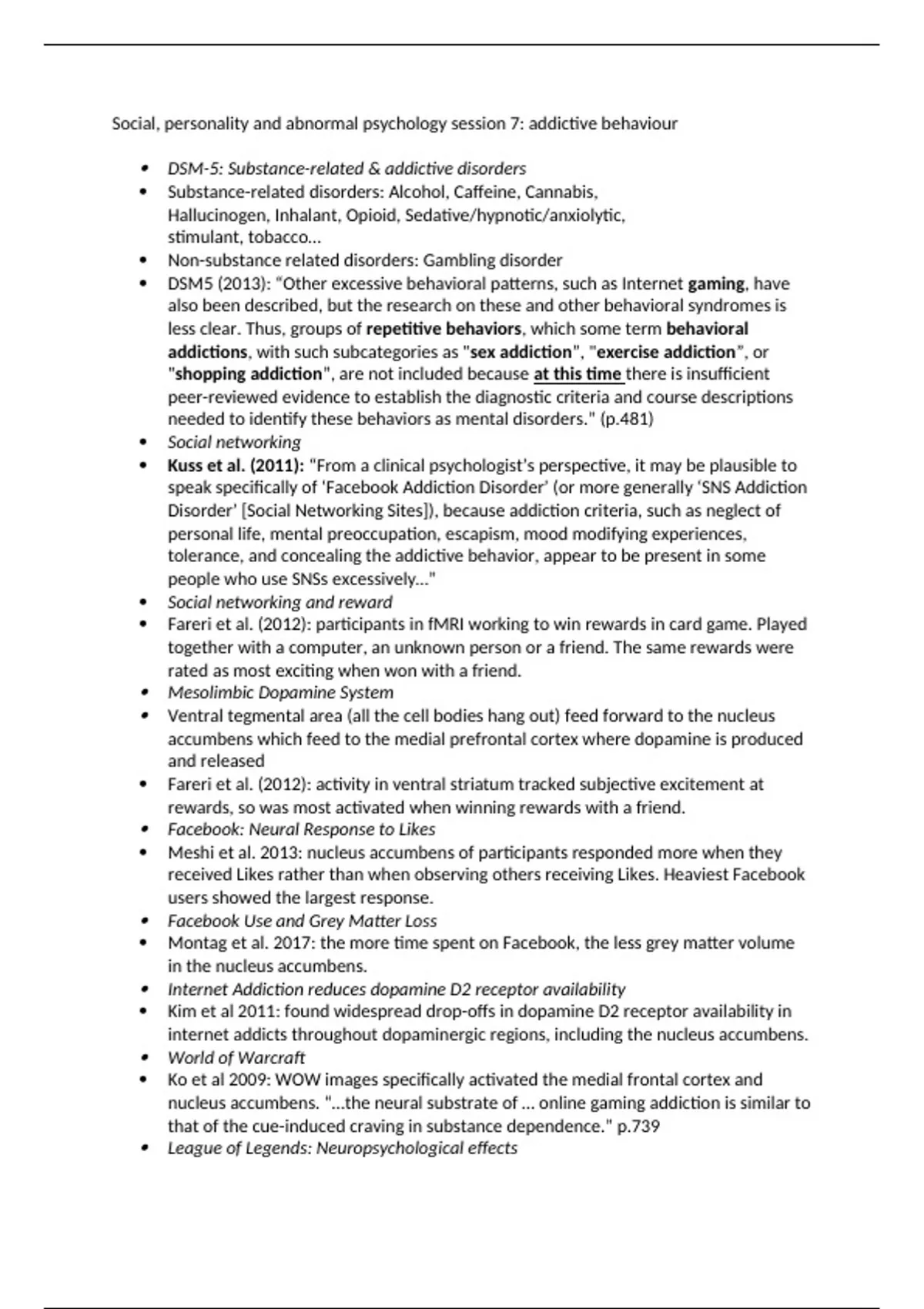Social, personality and abnormal psychology session 7: addictive behaviour
