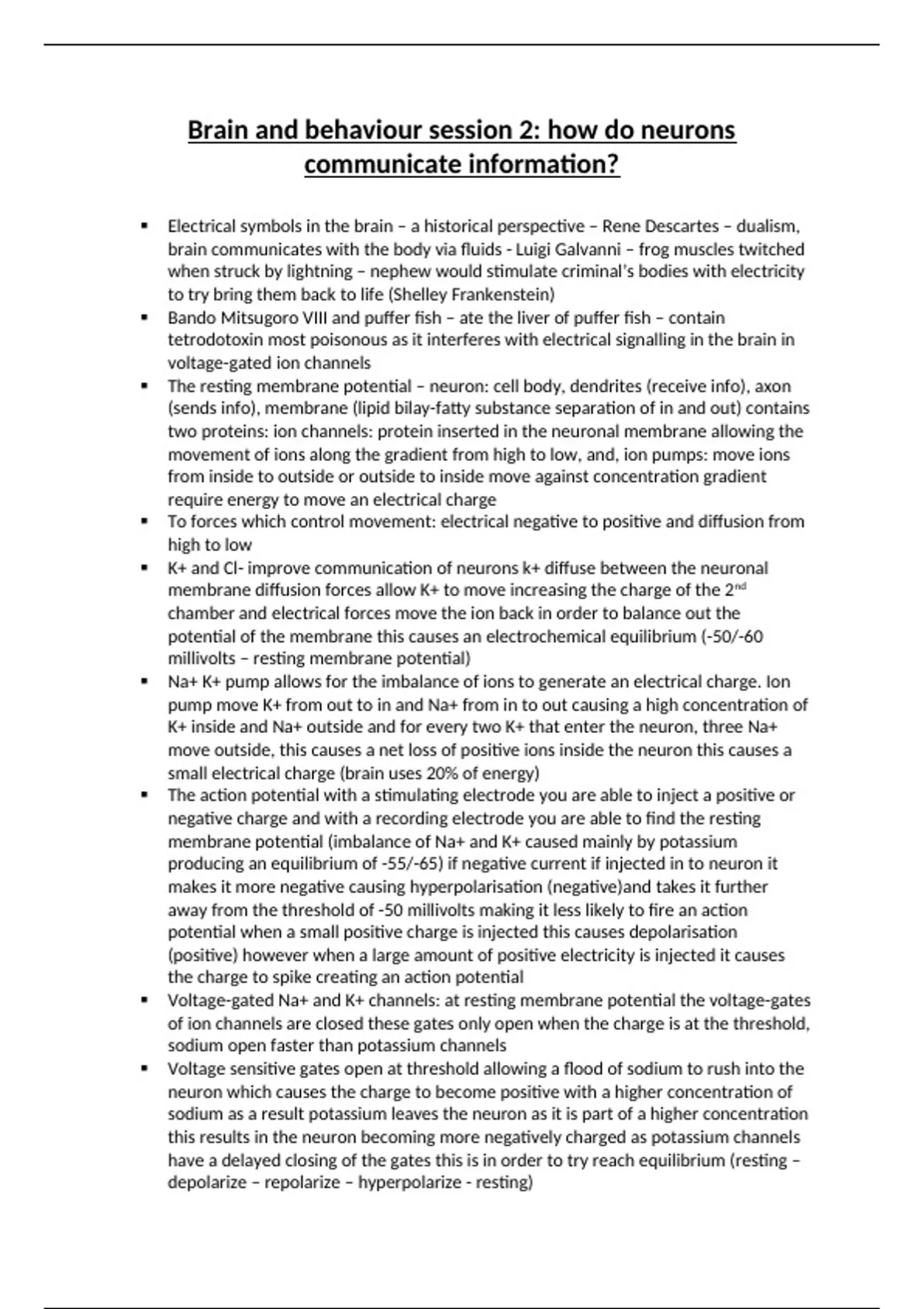 Lecture Notes on Brain and Behavior These lecture notes explore the relationship between the brain and behavior, focusing on the structure and function of the nervous system, neural communication, and the biological basis of psychological processes.
