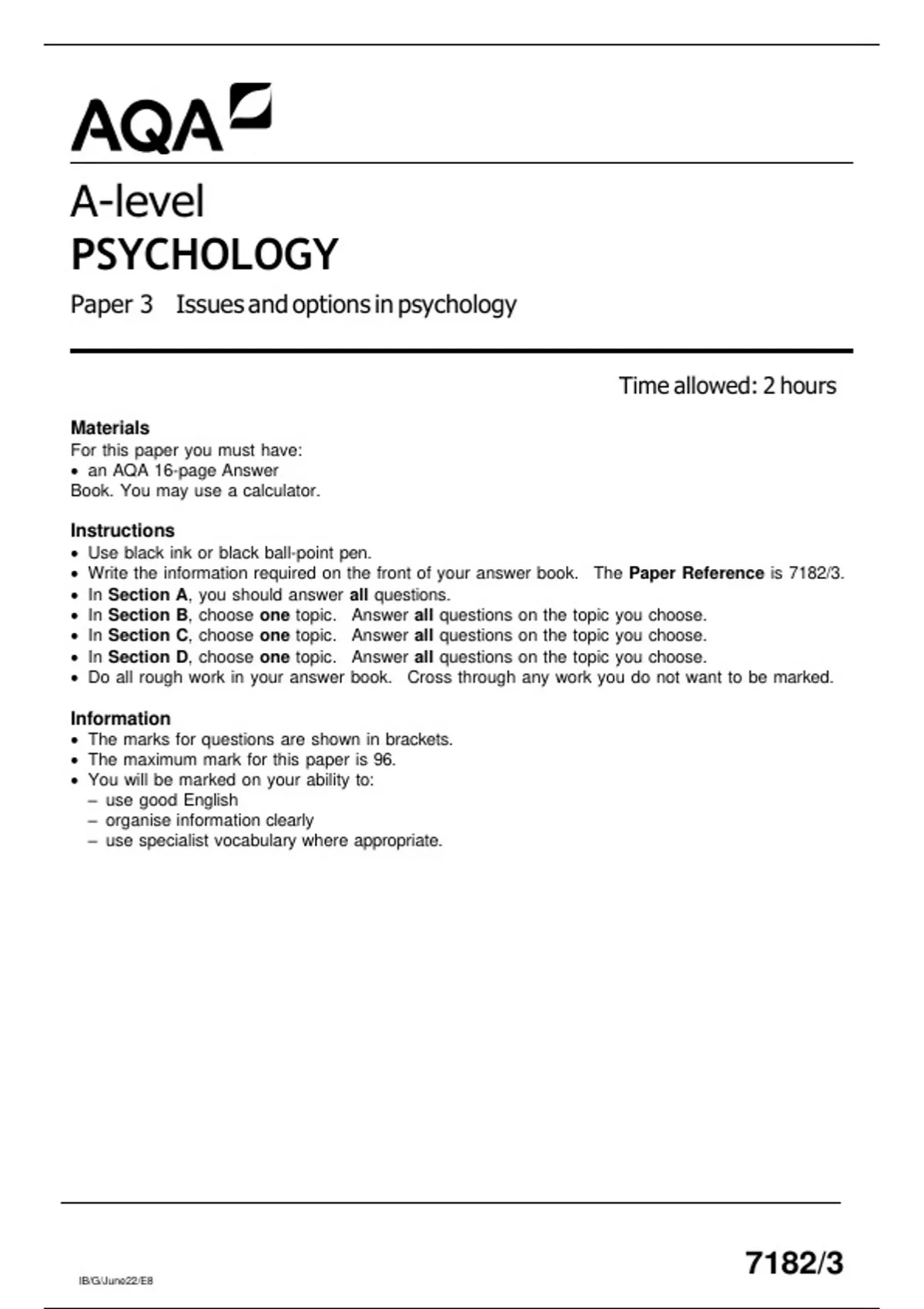 AQA A-level PSYCHOLOGY Paper 3 Issues and options in psychology