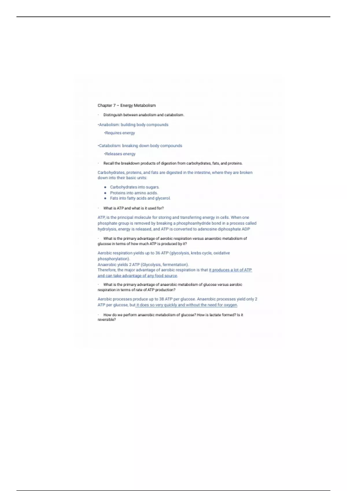 This is a comprehensive and detailed Chapter 7 Review Guide on Energy Metabolism. An Essential Study Resource just for YOU!!