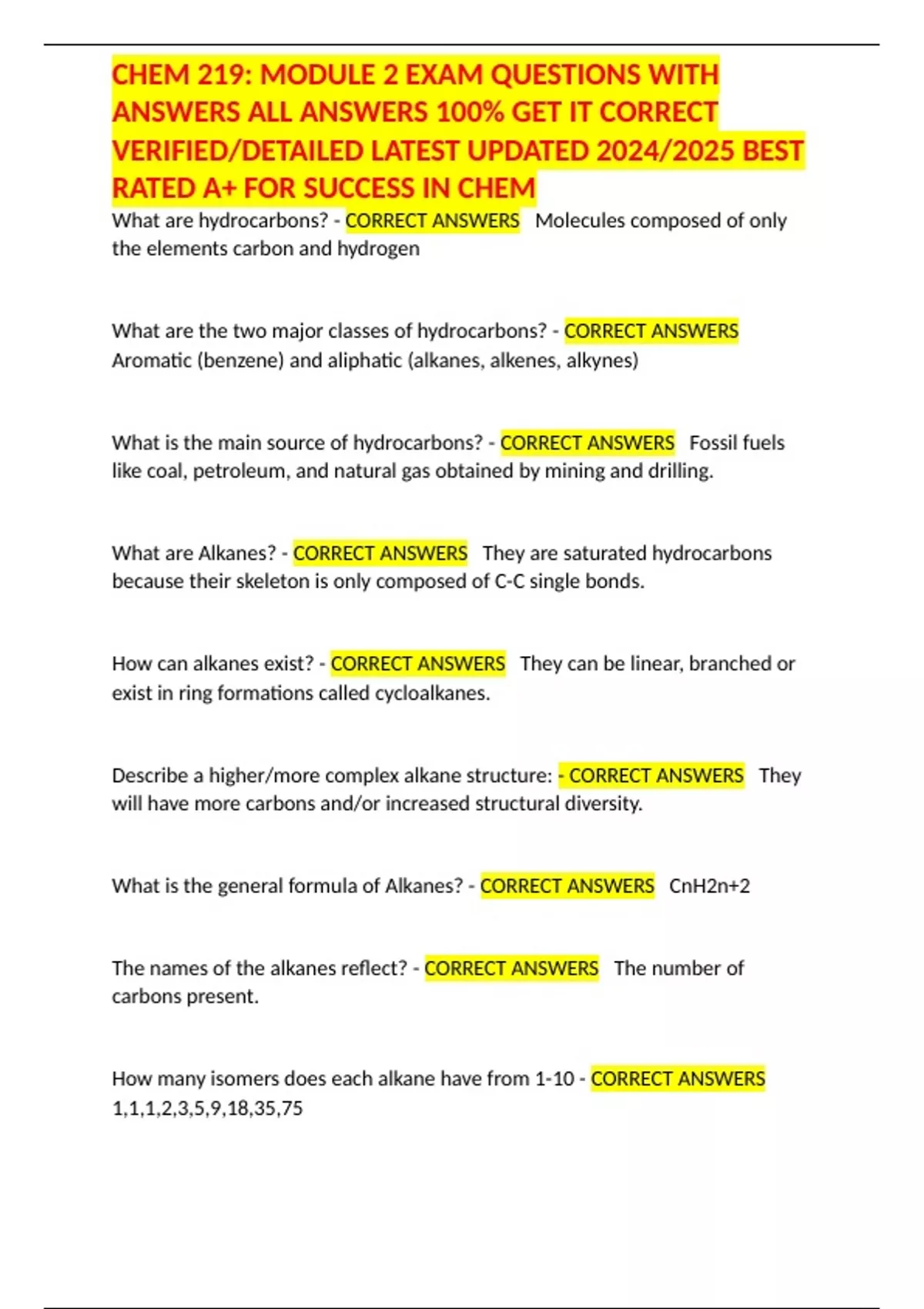 , CHEM 219: MODULE 2 EXAM QUESTIONS WITH