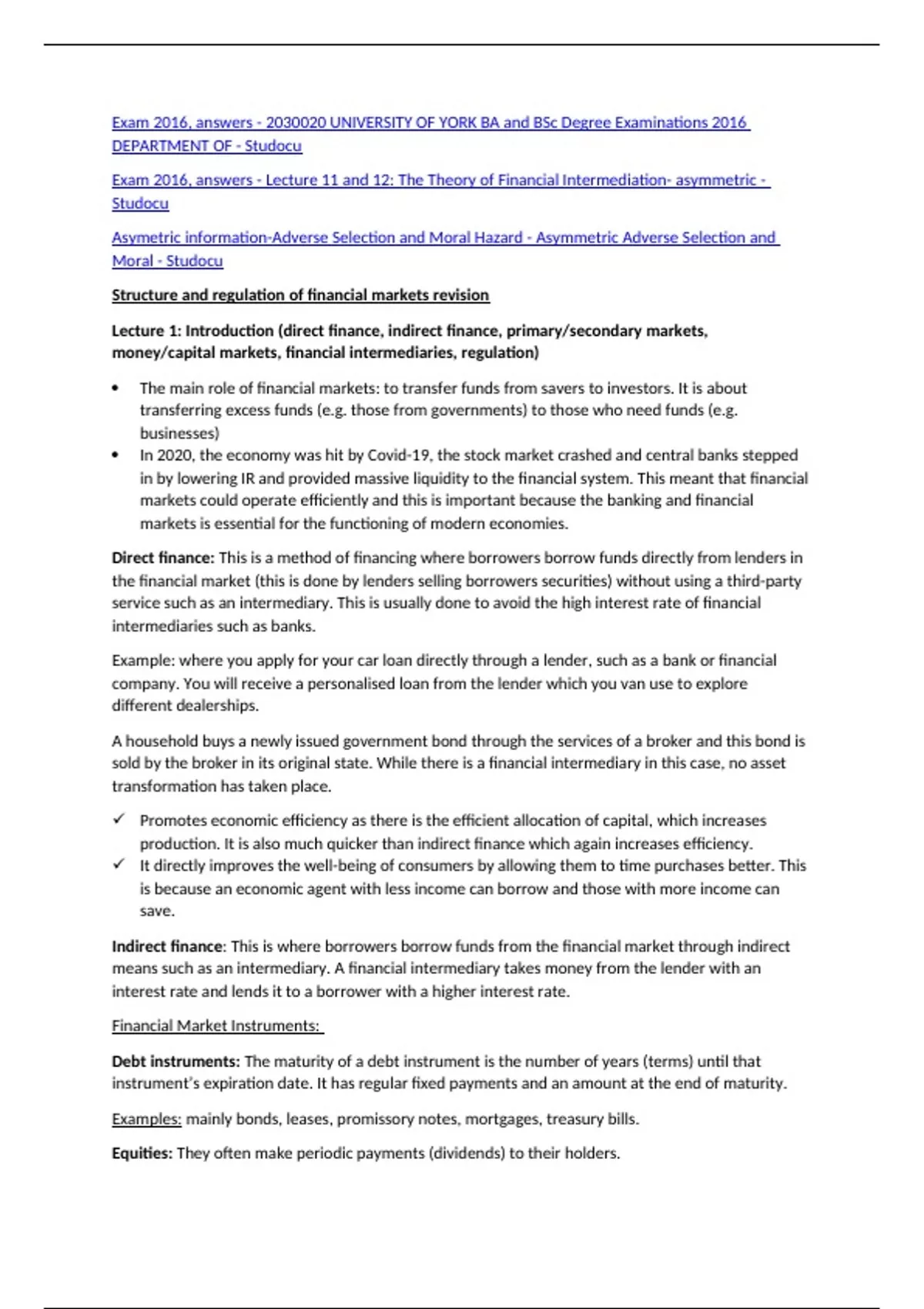 Provides in depth lecture notes and explanations to the The Structure and Regulation of Financial Markets content