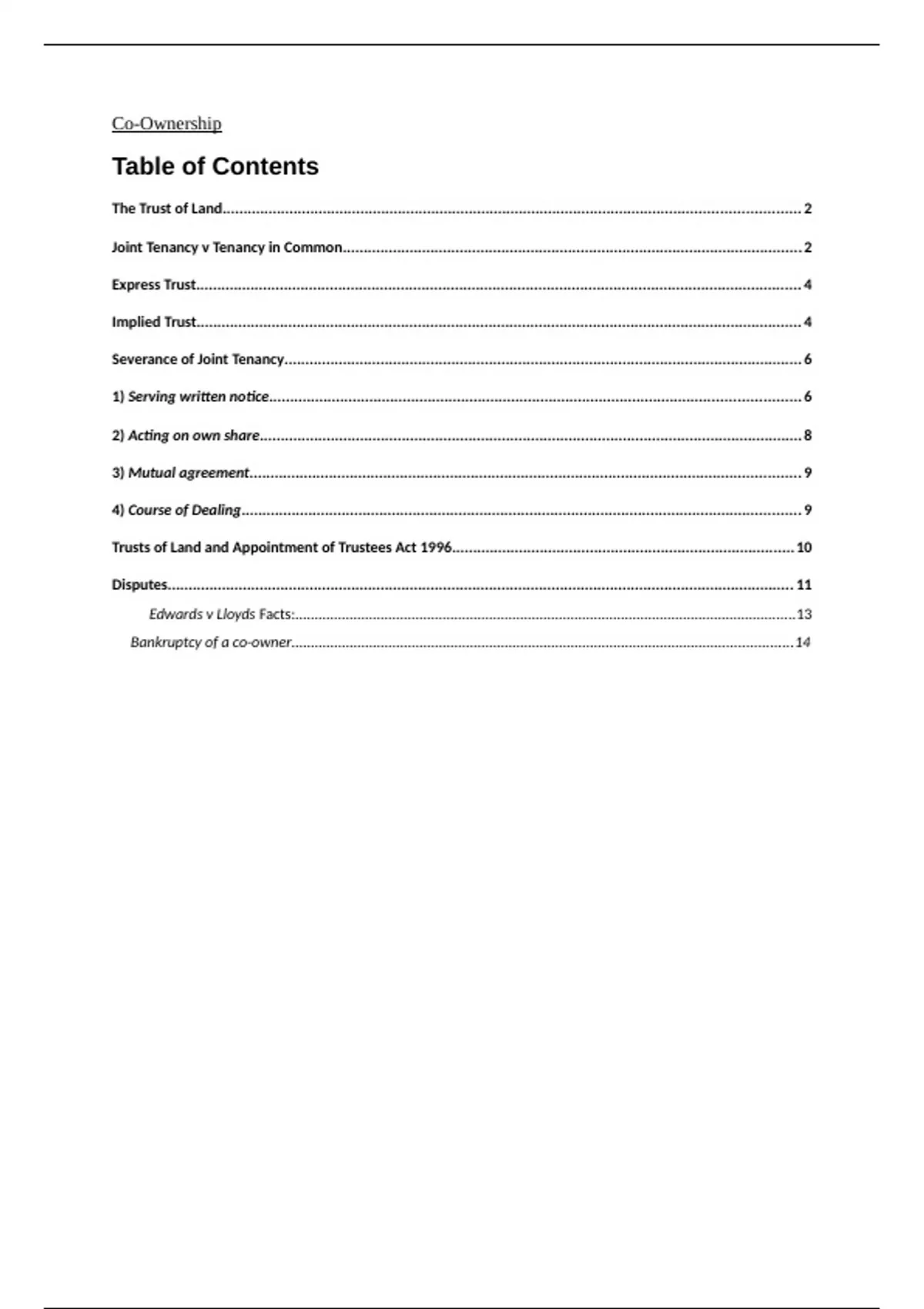 Trusts of Land and Appointment of Trustees Act 1996..................................................................................10