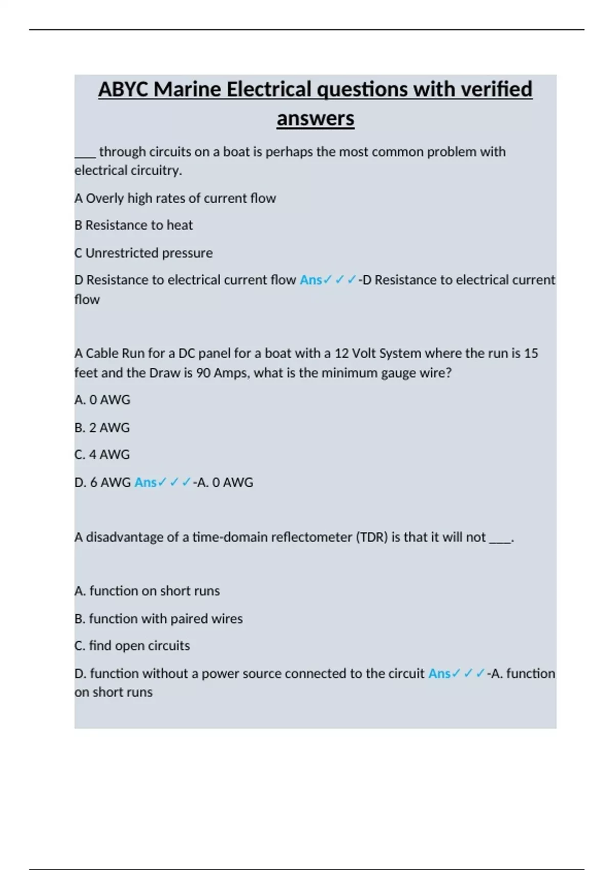 ABYC Marine Electrical questions with verified