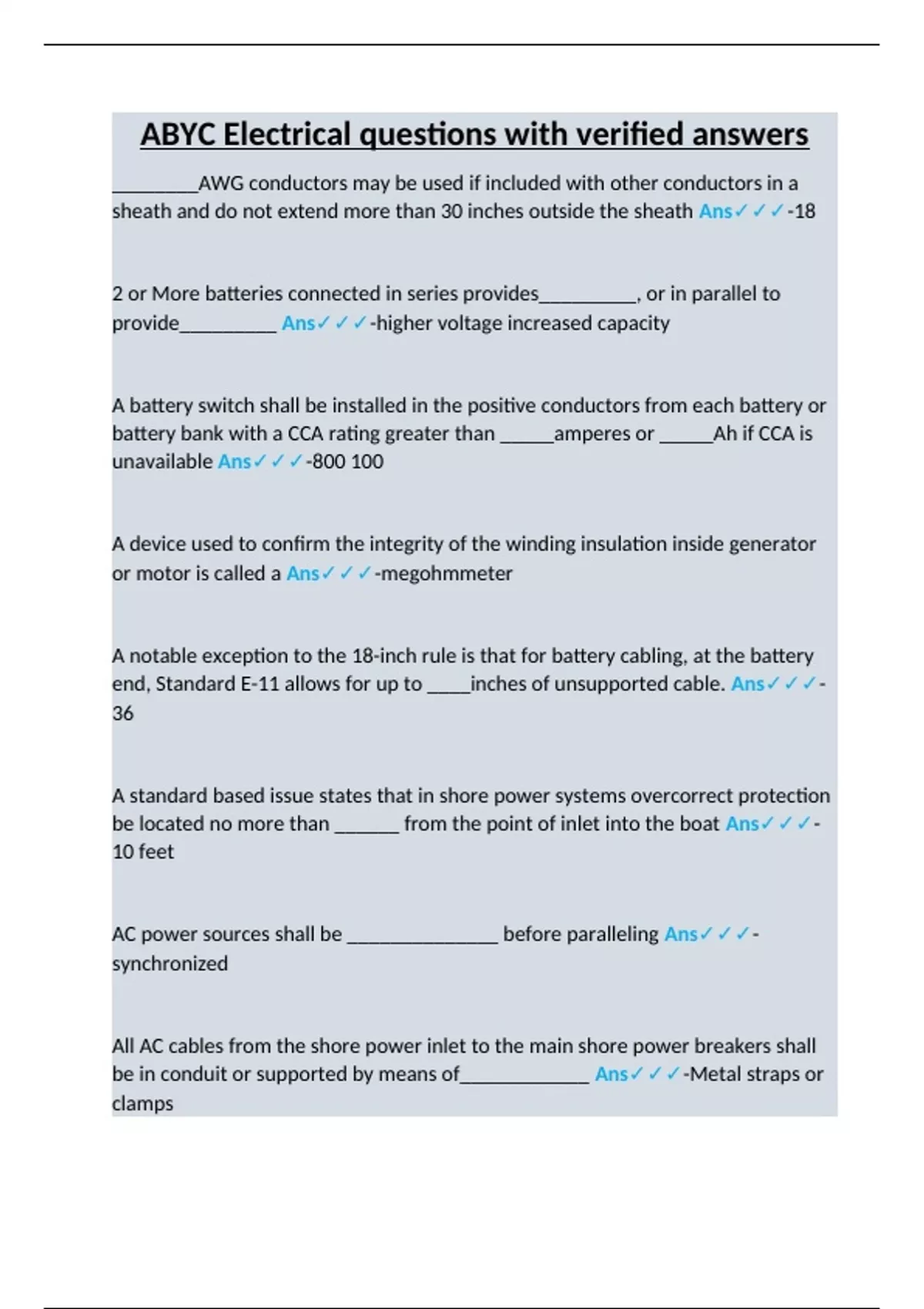 ABYC Electrical questions with verified answers