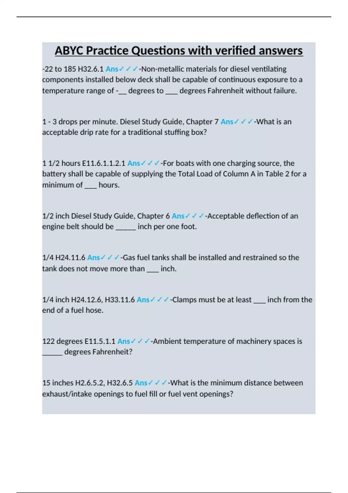 ABYC Practice Questions with verified answers
