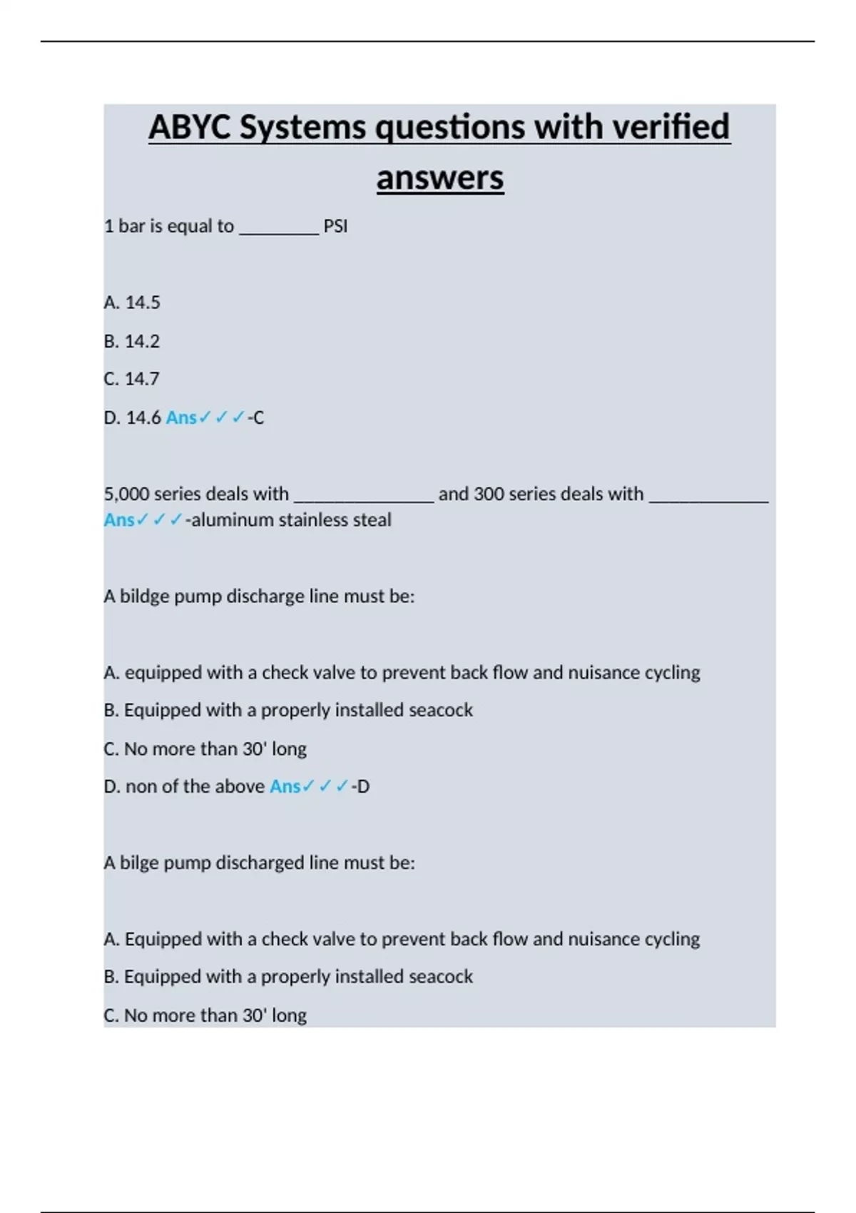ABYC Systems questions with verified answers.