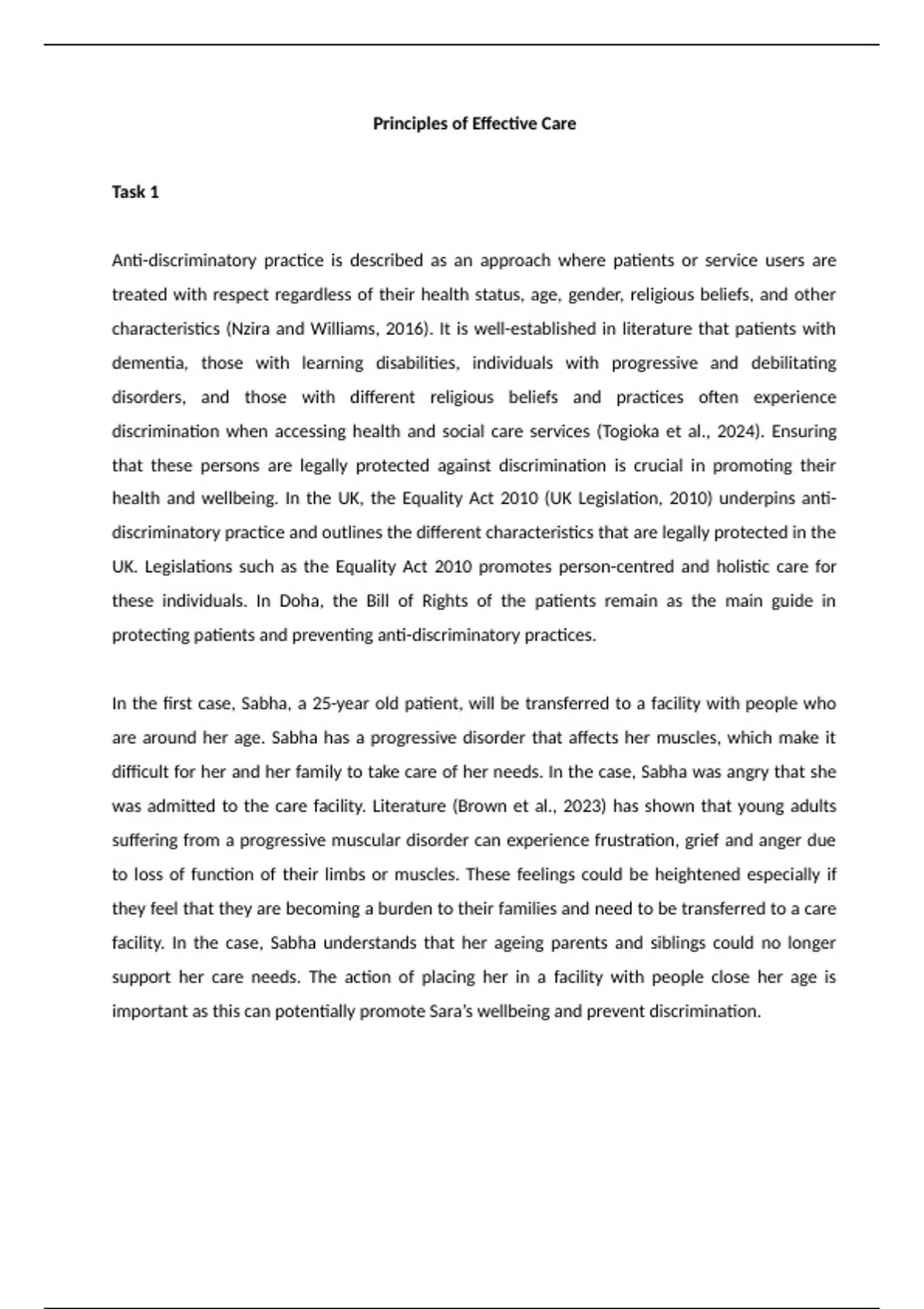 crucial as this ensures that her care needs are addressed. Anti-discriminatory practice promotes