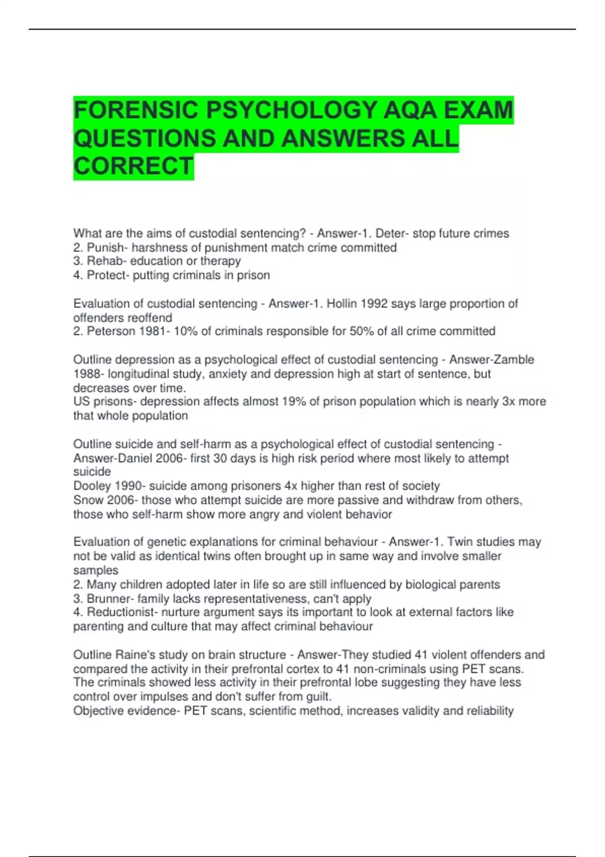 Evaluation of custodial sentencing - Answer-1. Hollin 1992 says large proportion of