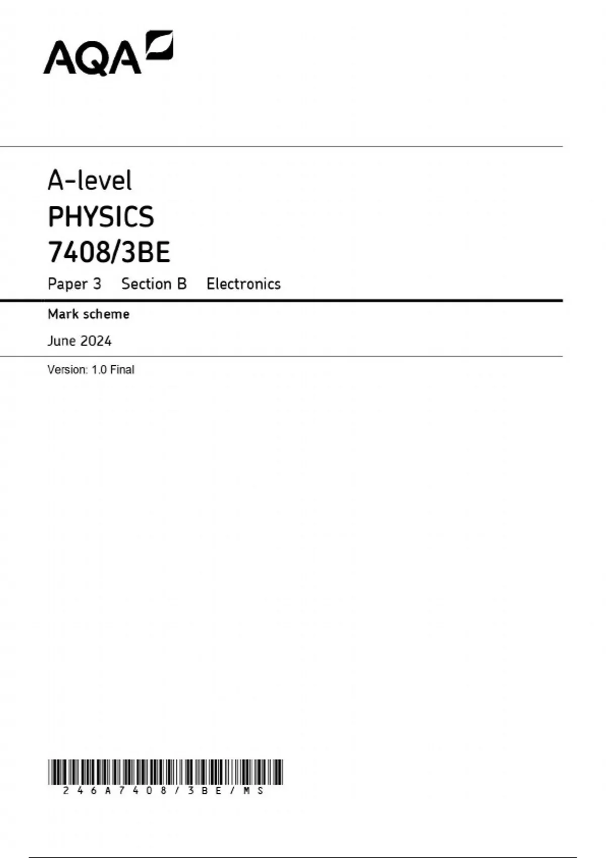 AQA A LEVEL PHYSICS 2024 PAPER 3 SECTION B ELECTRONICS MARKSCHEME [VERIFIED]