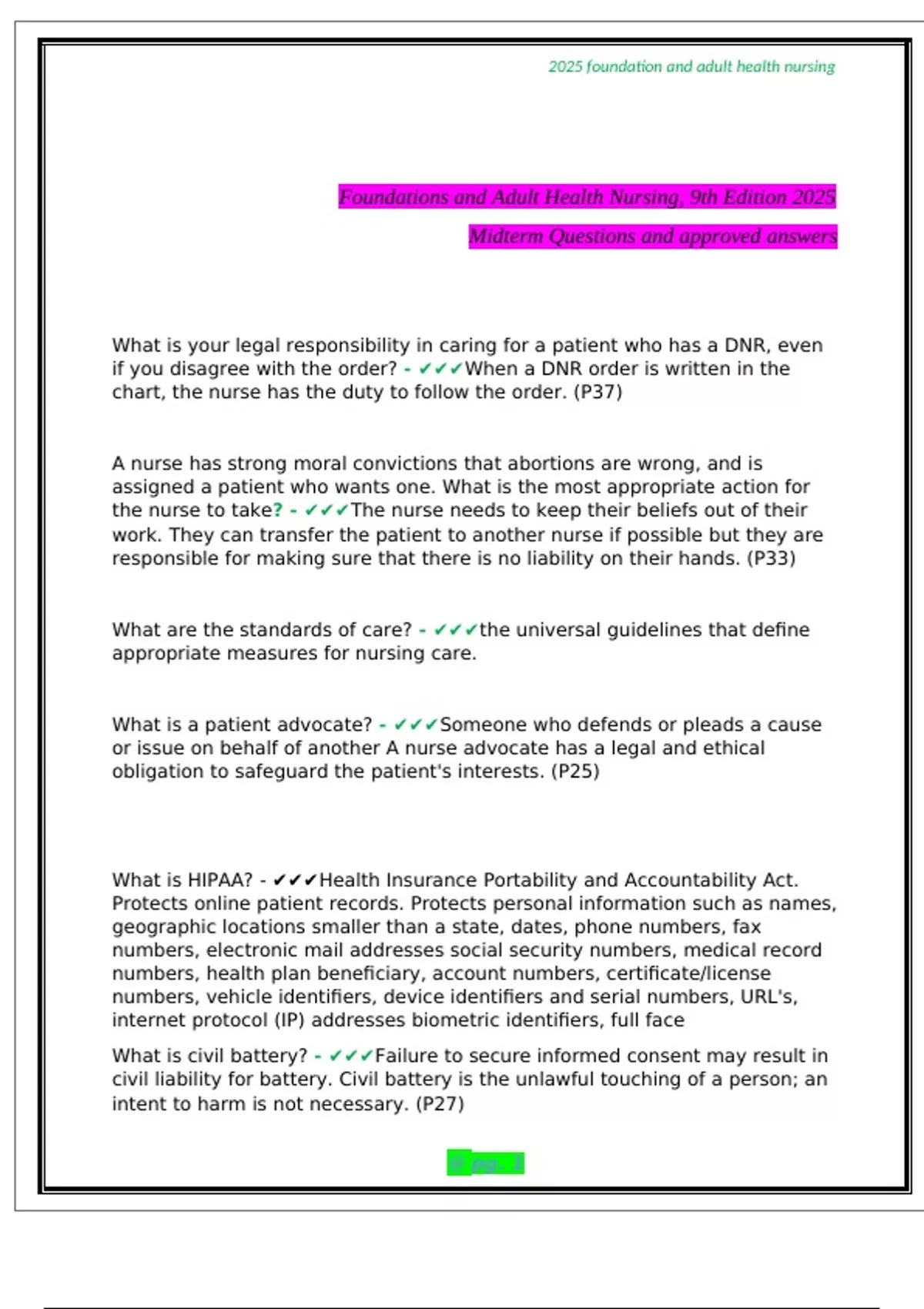 Foundations and Adult Health Nursing, 9th Edition 2025