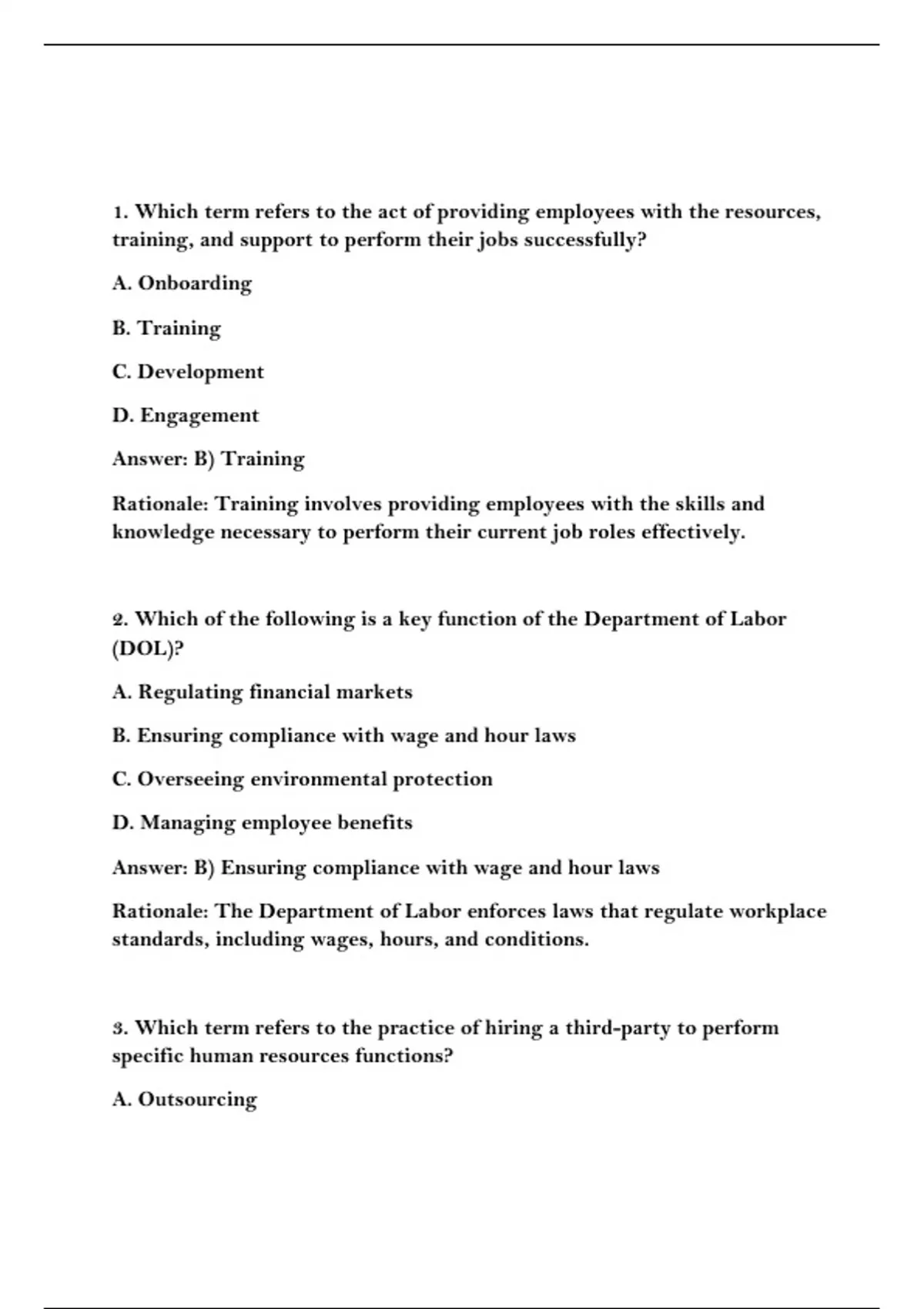 Rationale: Outsourcing is the practice of contracting out certain HR
