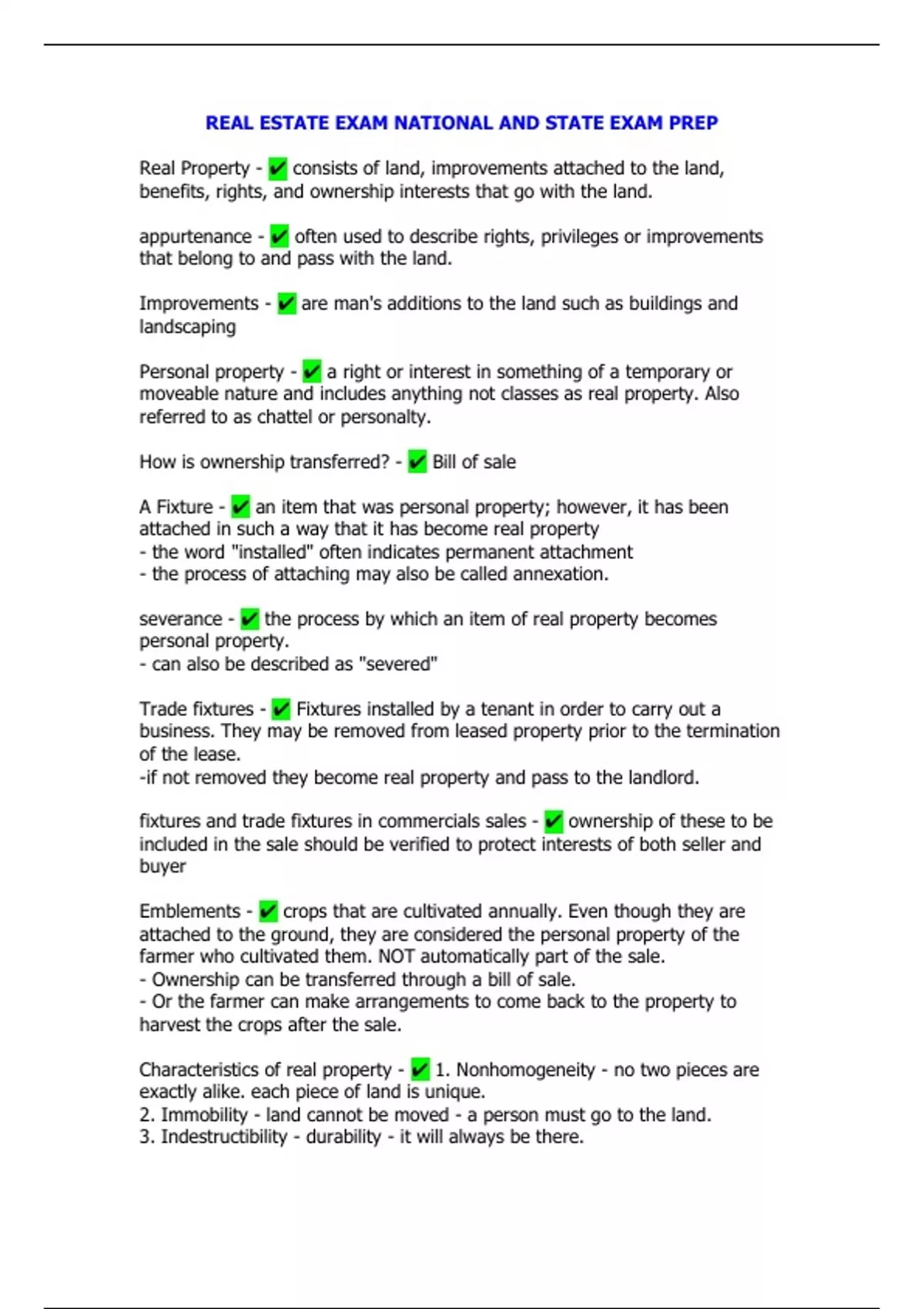 Characteristics of real property - ✔ 1. Nonhomogeneity - no two pieces are