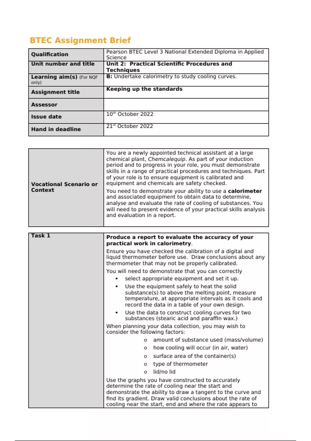 Learning aim(s) (For NQF B: Undertake calorimetry to study cooling curves.