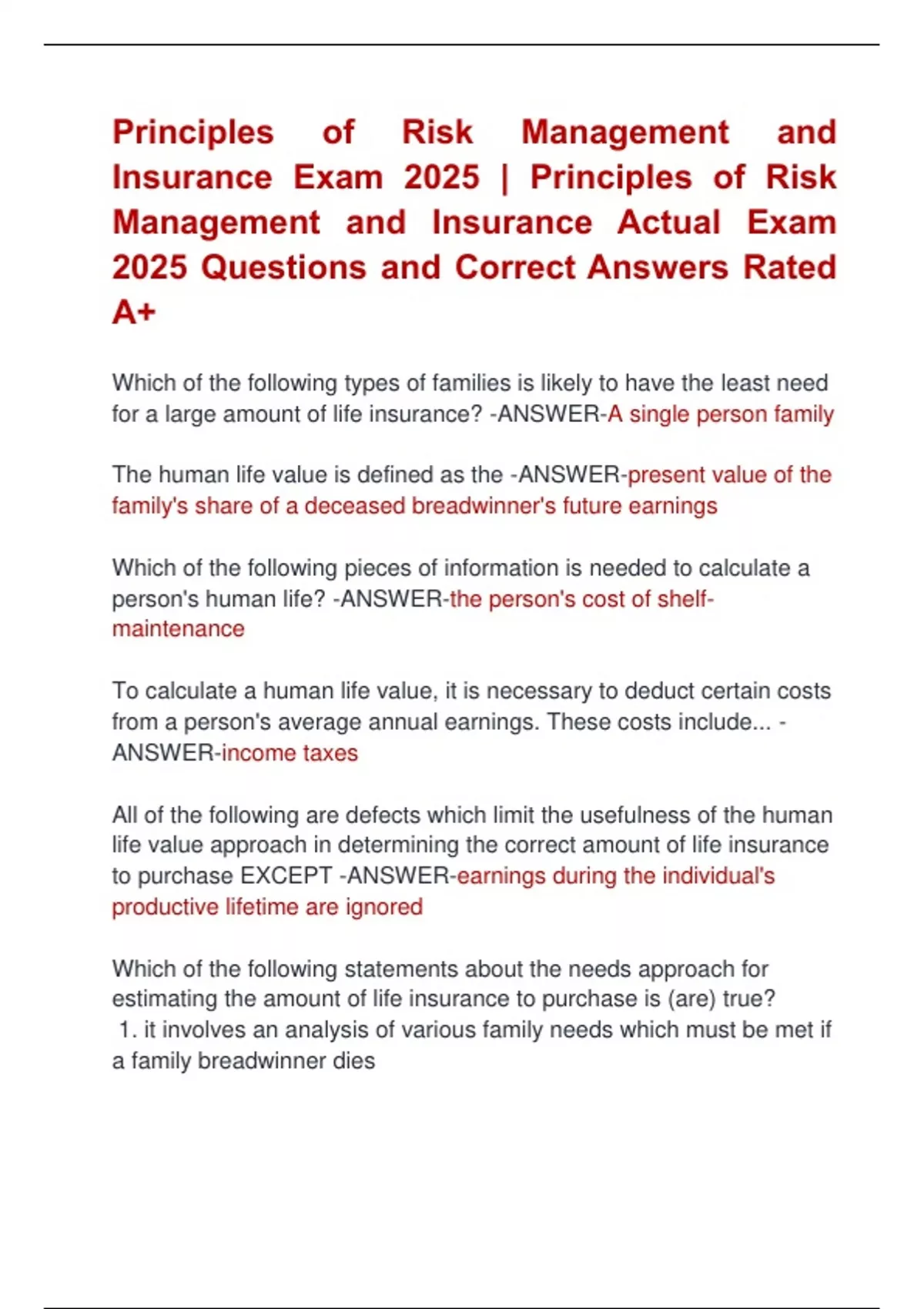 Insurance Exam 2025 | Principles of Risk