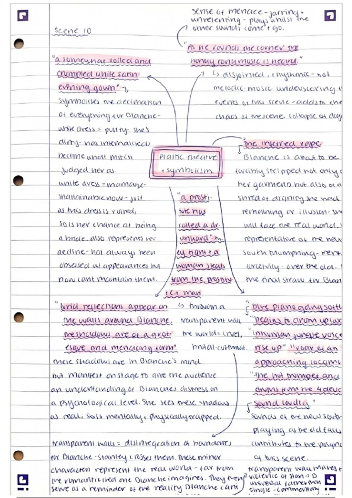A* analysis of all important quotes from Streetcar Scene 10, covering all characters. Delves into key themes, motifs and stagecraft. This is useful for both A level and GCSE English Literature studies, for all exam boards.