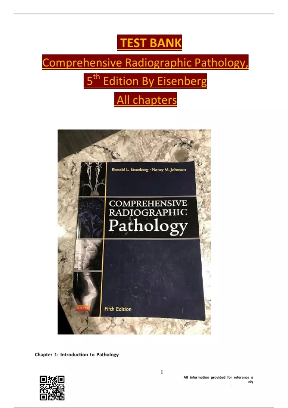 Test Bank for Comprehensive Radiographic Pathology 5th Edition By Eisenberg Complete All Chapters