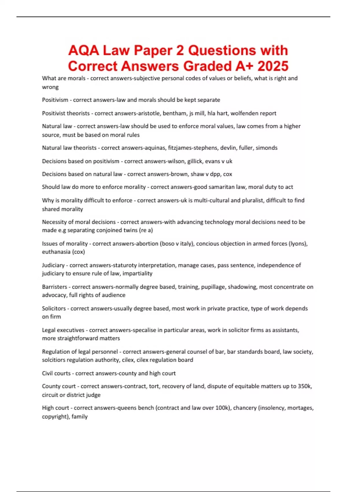Natural law - correct answers-law should be used to enforce moral values, law comes from a higher