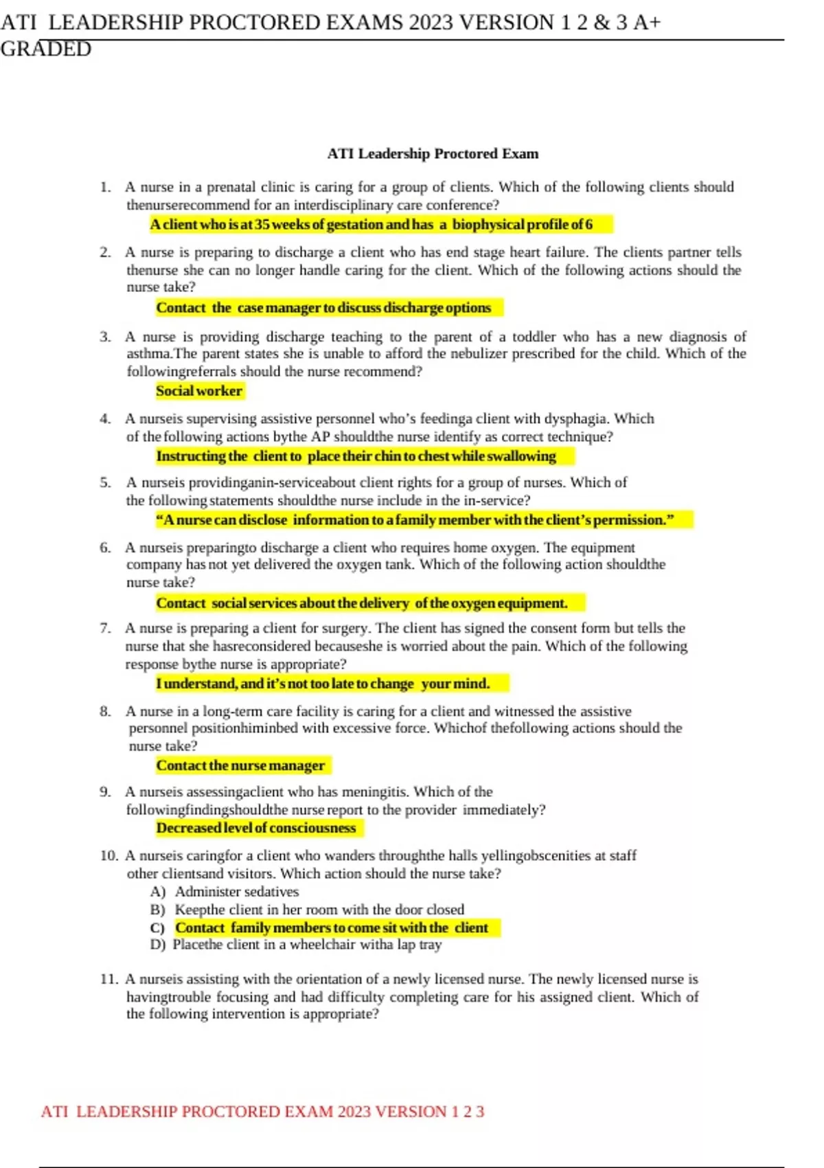 ATI LEADERSHIP PROCTORED EXAM 2023 VERSION 1 2 3