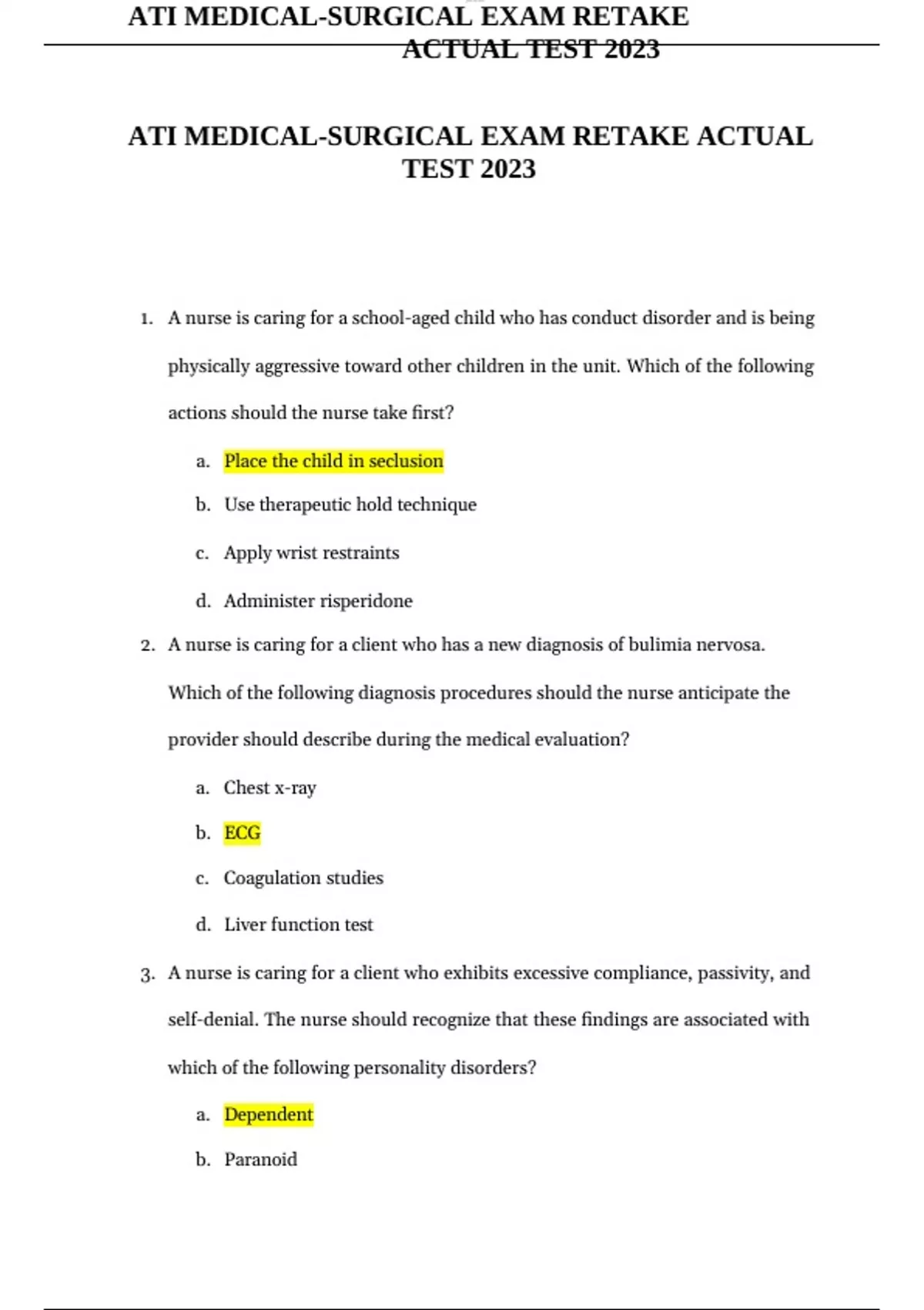 ATI MEDICAL-SURGICAL EXAM RETAKE ACTUAL