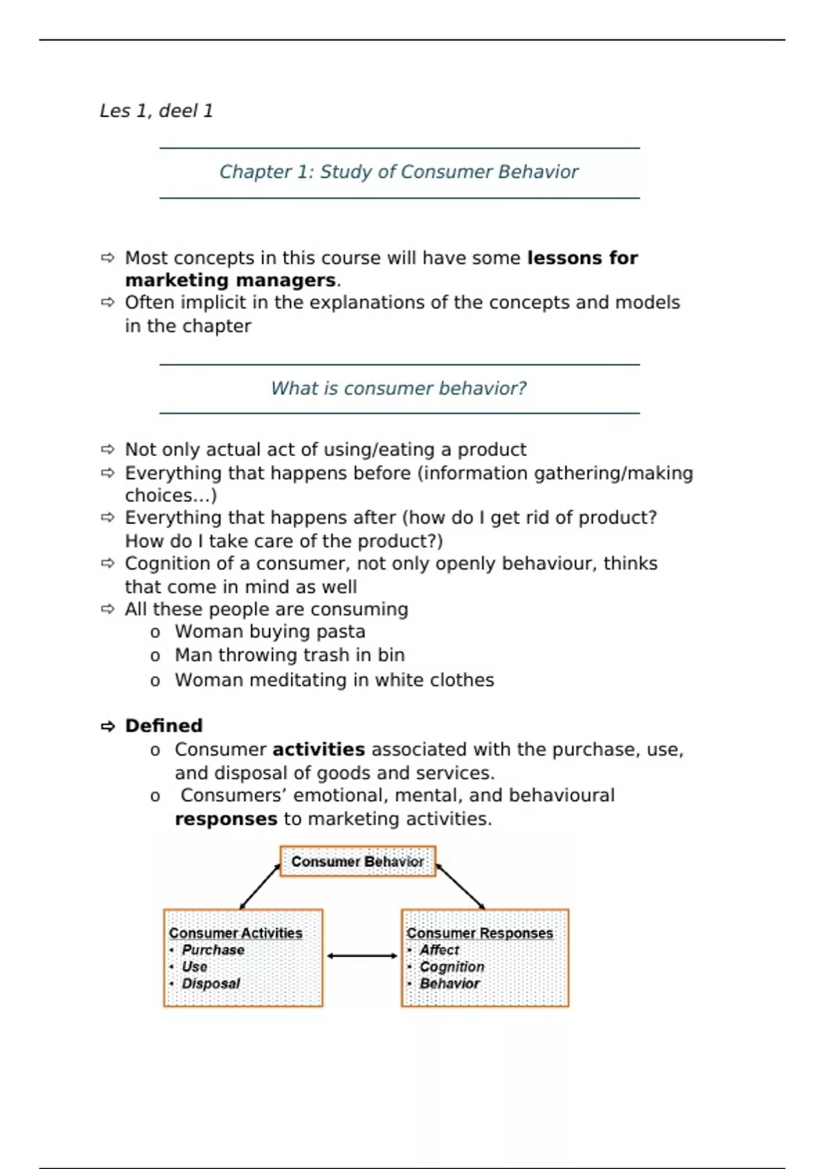 Summary Consumer behaviour class notes