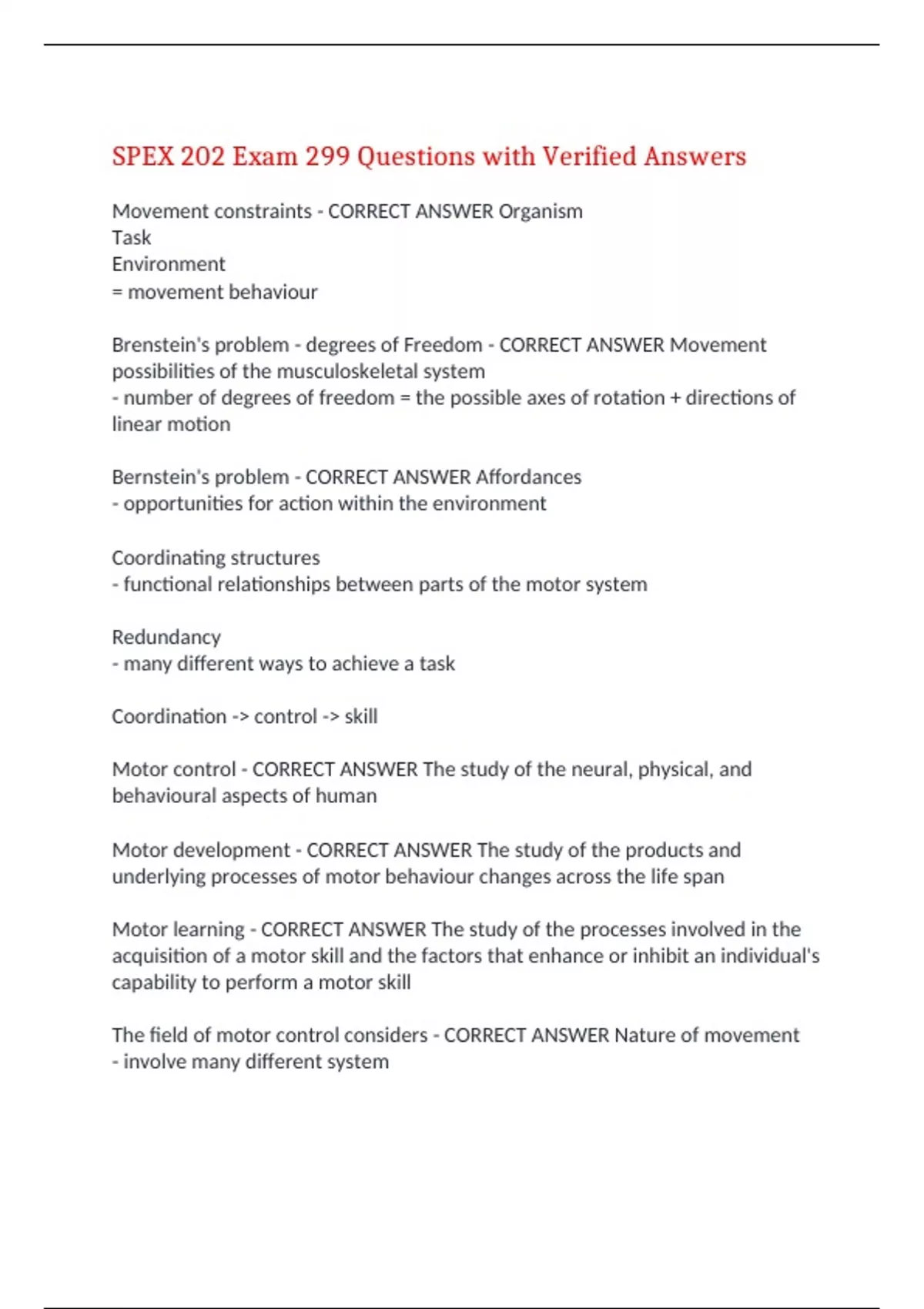 The field of motor control considers - CORRECT ANSWER Nature of movement