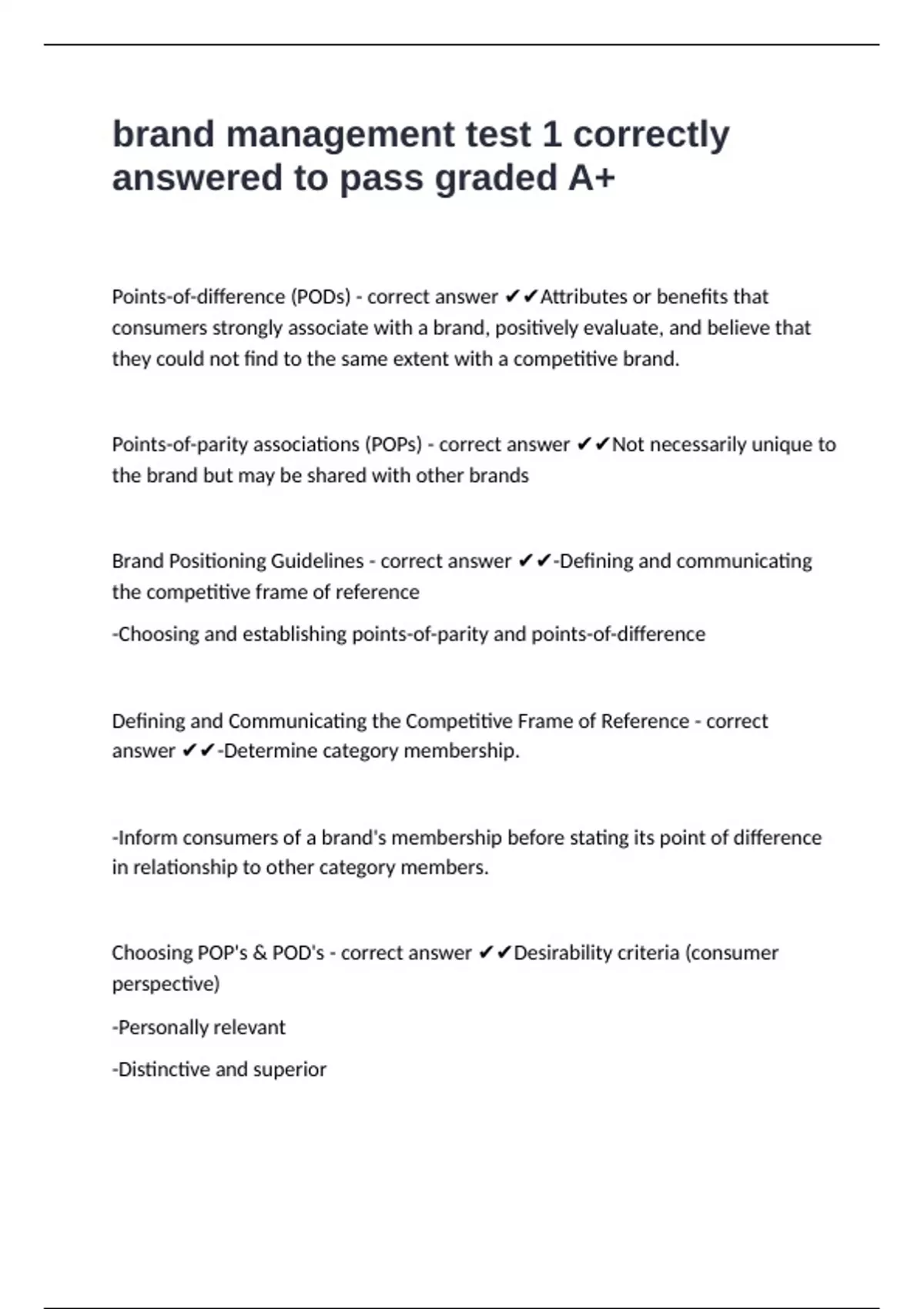 Points-of-difference (PODs) - correct answer ✔✔Attributes or benefits that