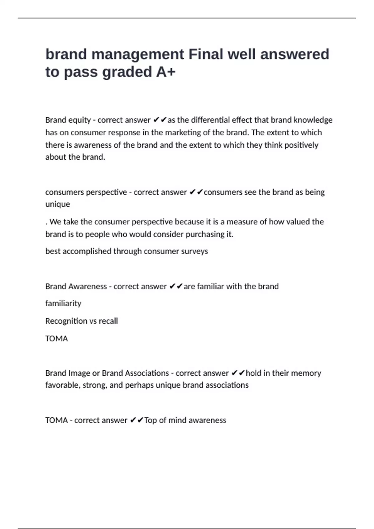 Brand equity - correct answer ✔✔as the differential effect that brand knowledge