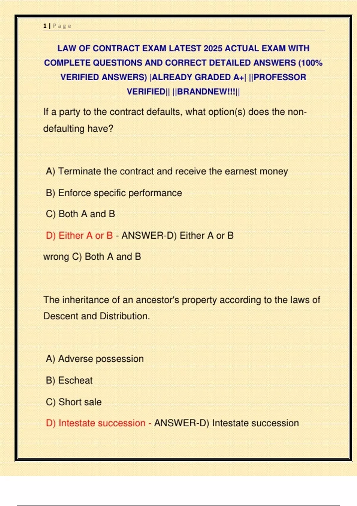 LAW OF CONTRACT EXAM LATEST 2025 ACTUAL EXAM WITH