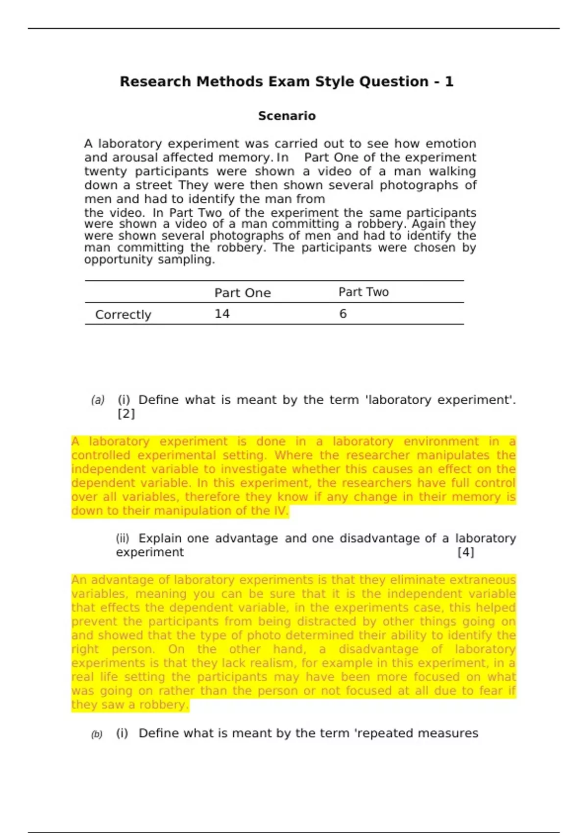 (a) (i) Define what is meant by the term 'laboratory experiment'.