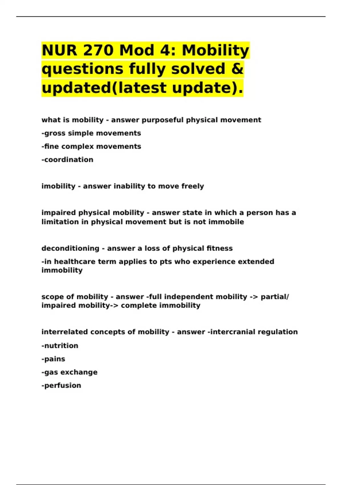 imobility - answer inability to move freely