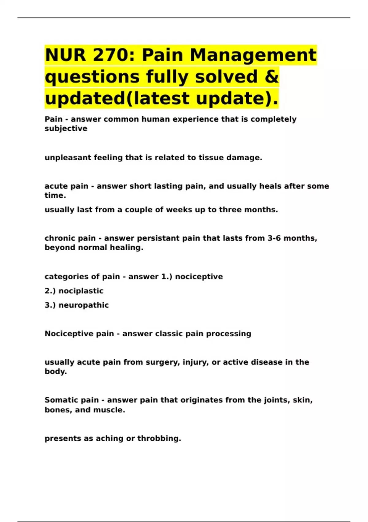 NUR 270 Pain Management questions fully solved & updated(latest update)