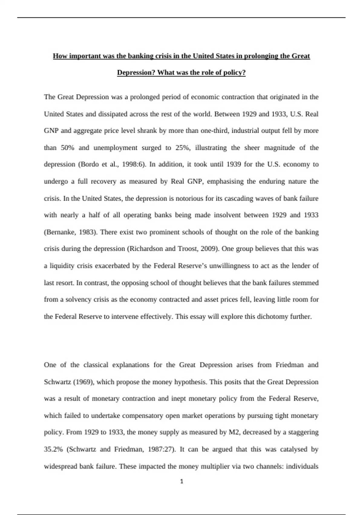 Schwartz (1969), which propose the money hypothesis. This posits that the Great Depression