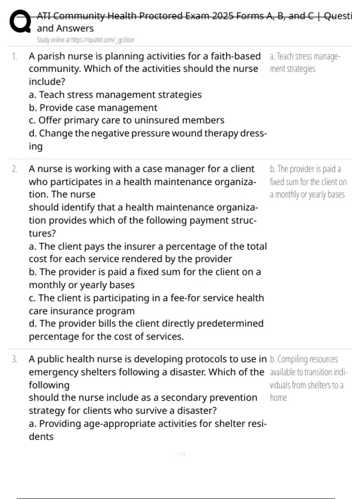 , ATI Community Health Proctored Exam 2025 Forms A, B, and C | Questi