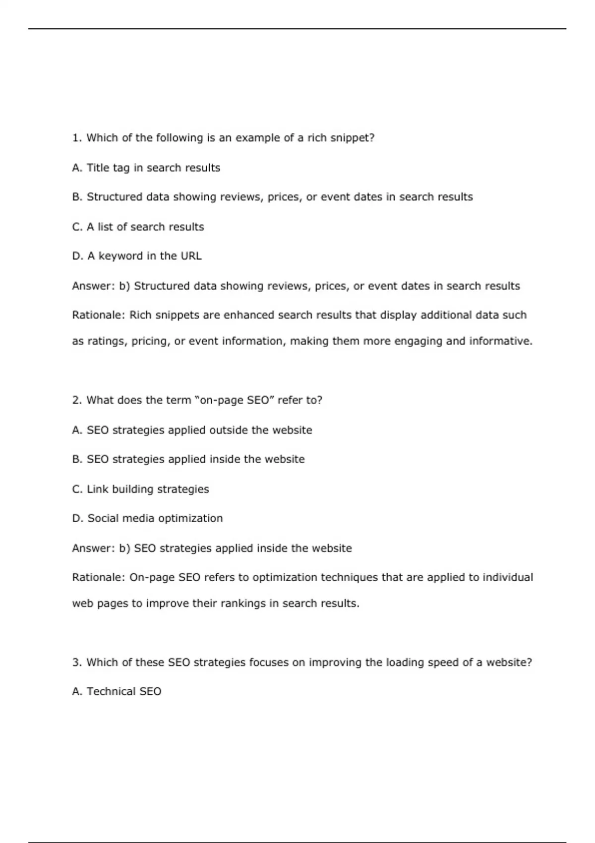 3. Which of these SEO strategies focuses on improving the loading speed of a website?