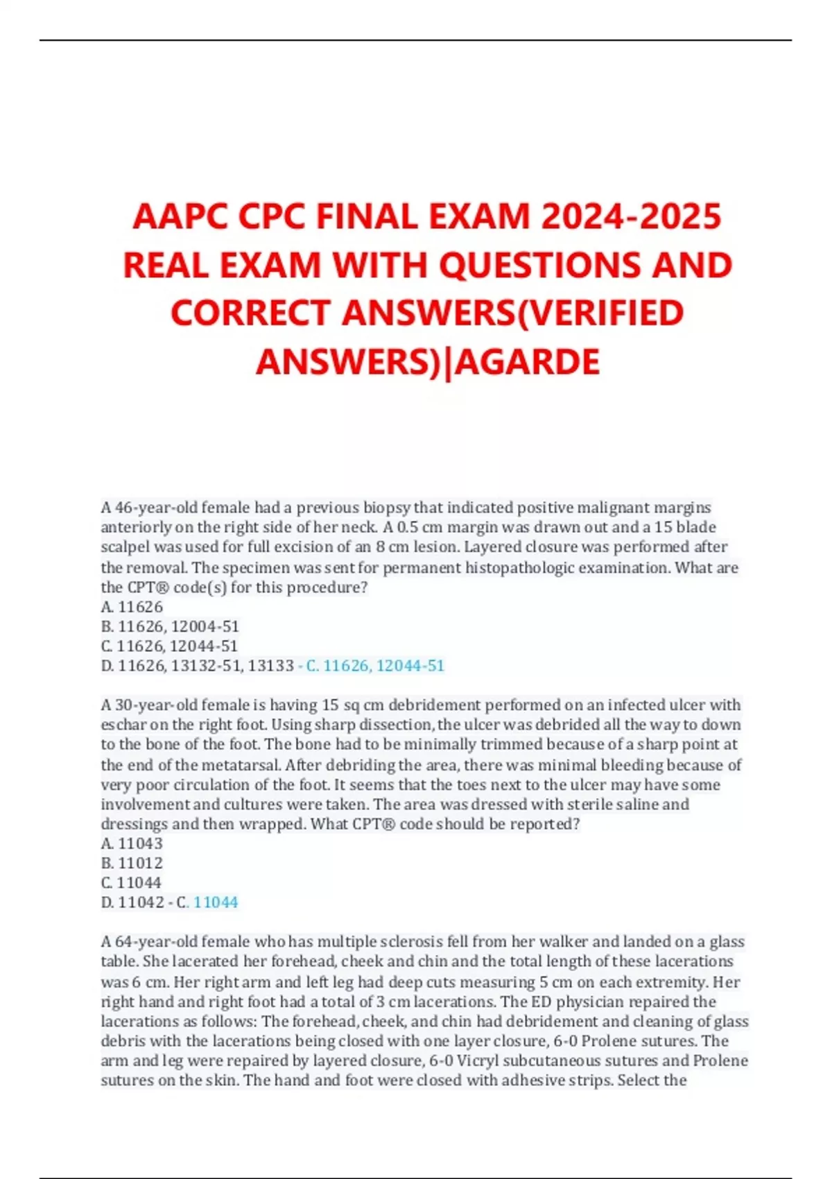 AAPC CPC FINAL EXAM 2024-2025
