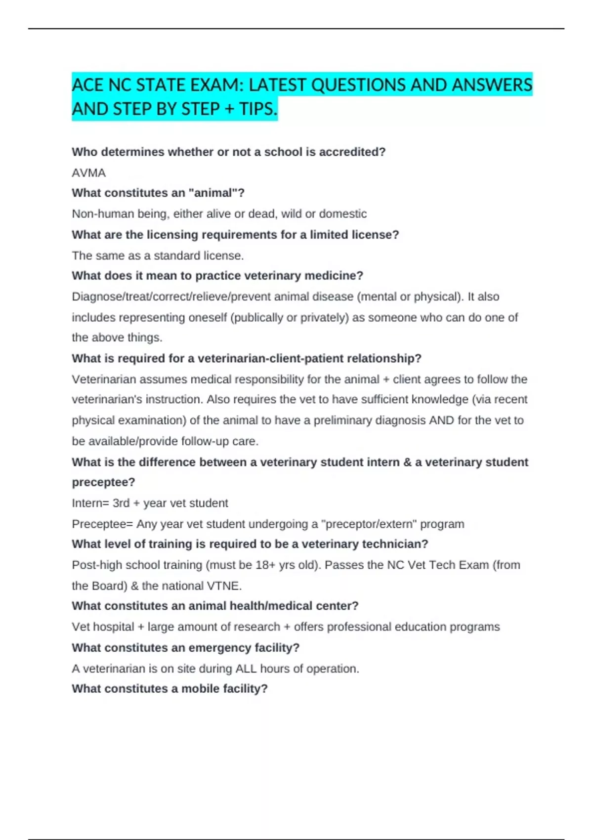 Post-high school training (must be 18+ yrs old). Passes the NC Vet Tech Exam (from