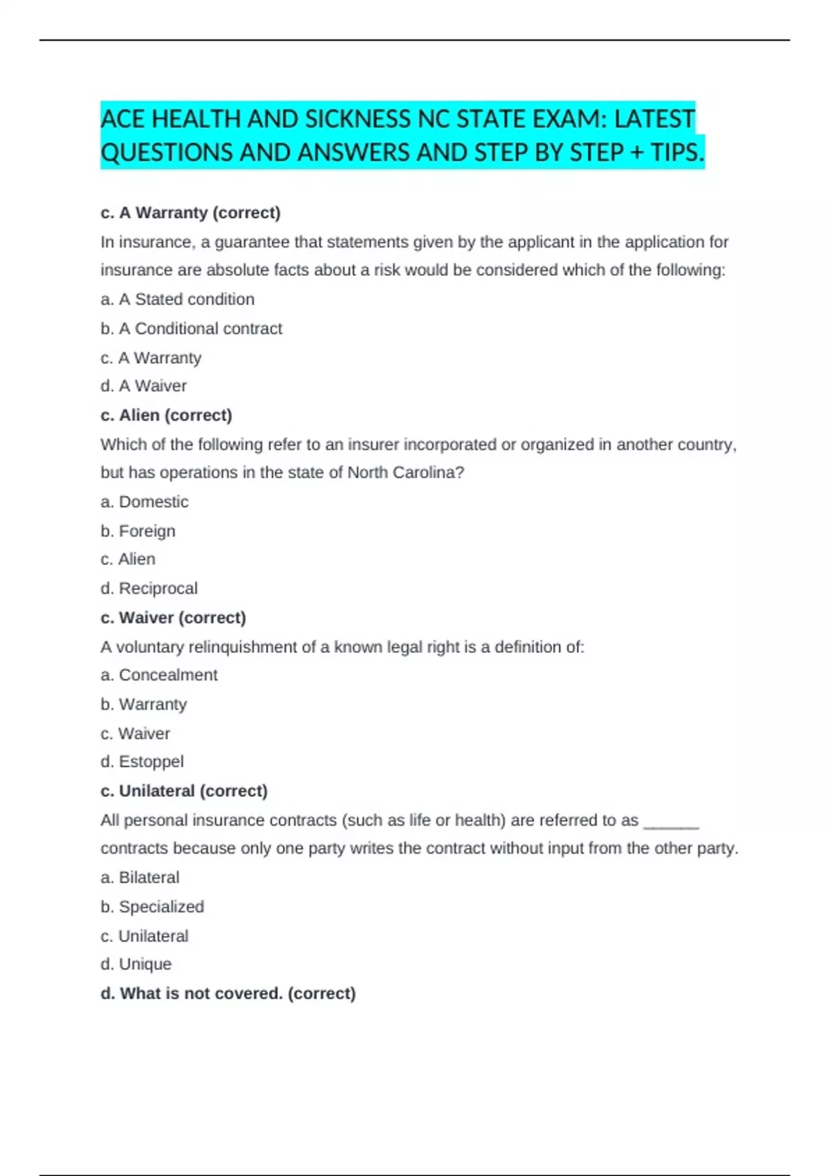 d. What is not covered.