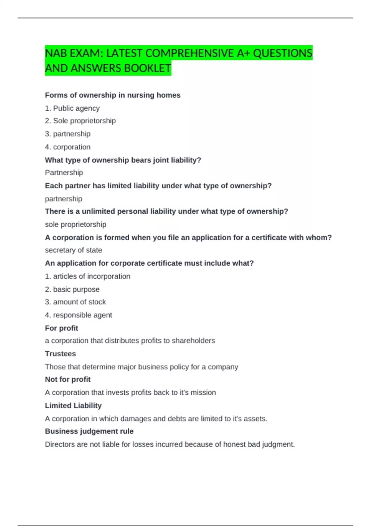 Forms of ownership in nursing homes