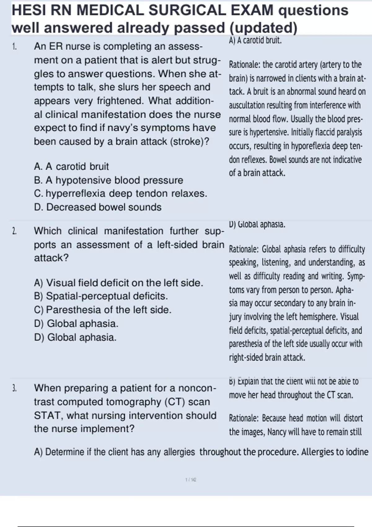 , HESI RN MEDICAL SURGICAL EXAM questions