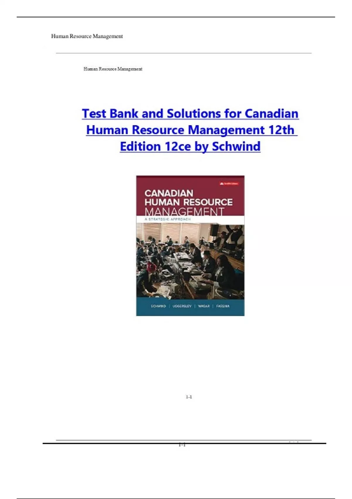 Test Bank for Canadian Human Resource Management 12th Edition Schwind / All Chapters 1 - 13 / Full Complete 2023/2024