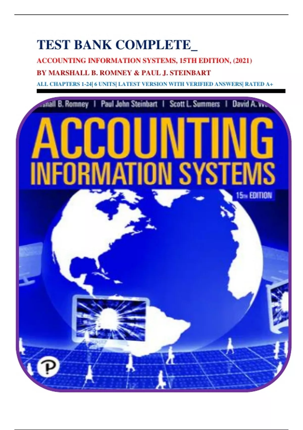 TEST BANK COMPLETE_ ACCOUNTING INFORMATION SYSTEMS, 15TH EDITION, (2021) BY MARSHALL B. ROMNEY & PAUL J. STEINBART ALL CHAPTERS 1-24| 6 UNITS| LATEST VERSION WITH VERIFIED ANSWERS| RATED A+