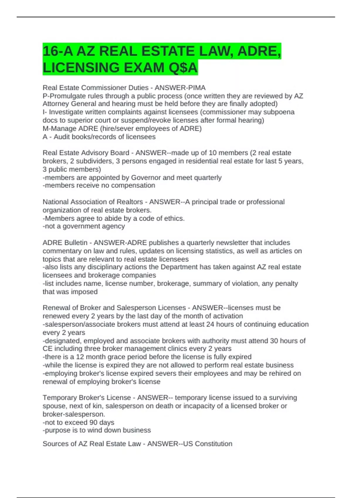 Real Estate Commissioner Duties - ANSWER-PIMA