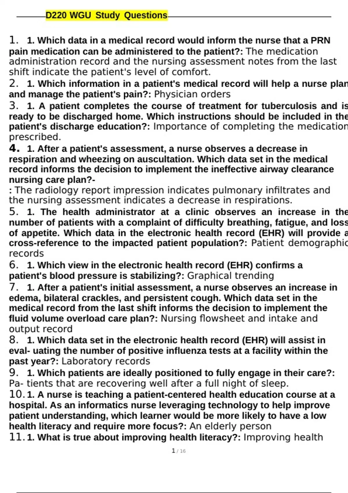 16. 1. A nurse thinks the electronic health record (EHR) has too many docu-