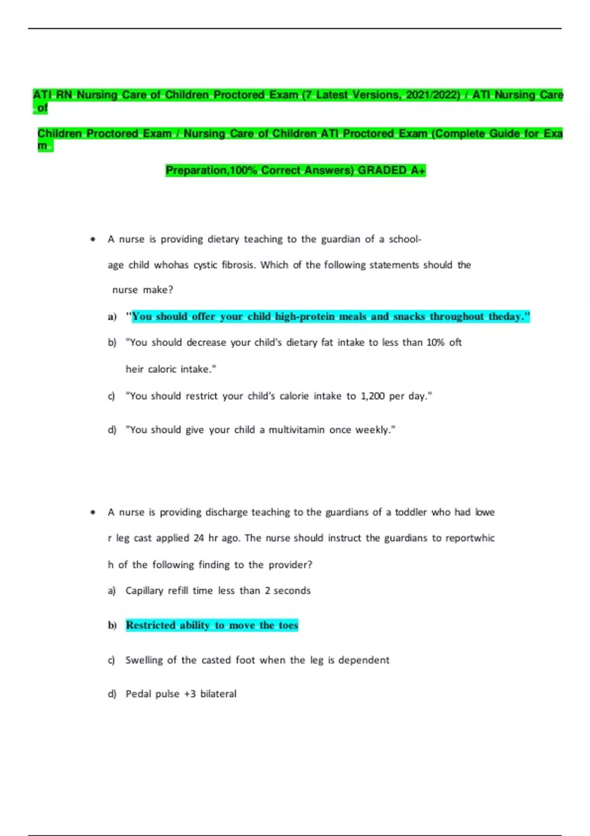 ATImRNmNursingmCaremofmChildrenmProctoredmExamm(7mLatestmVersions,m2021/2022)m/mATImNursingmCare
