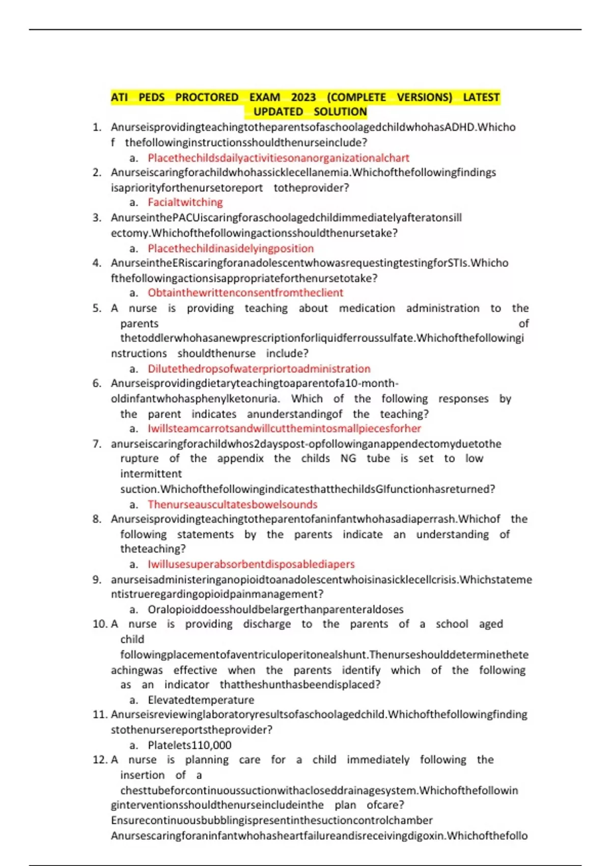 ATI PEDS PROCTORED EXAM 2023 (COMPLETE VERSIONS) LATEST