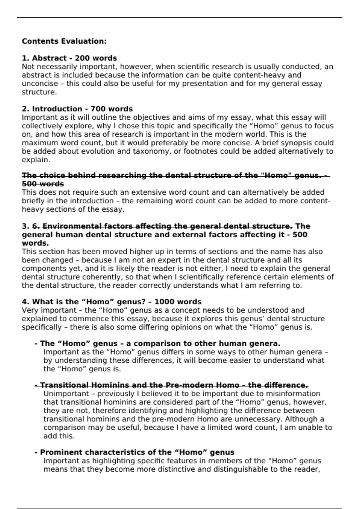 Important – it will briefly summarise how the dental structure has changed, evaluate
