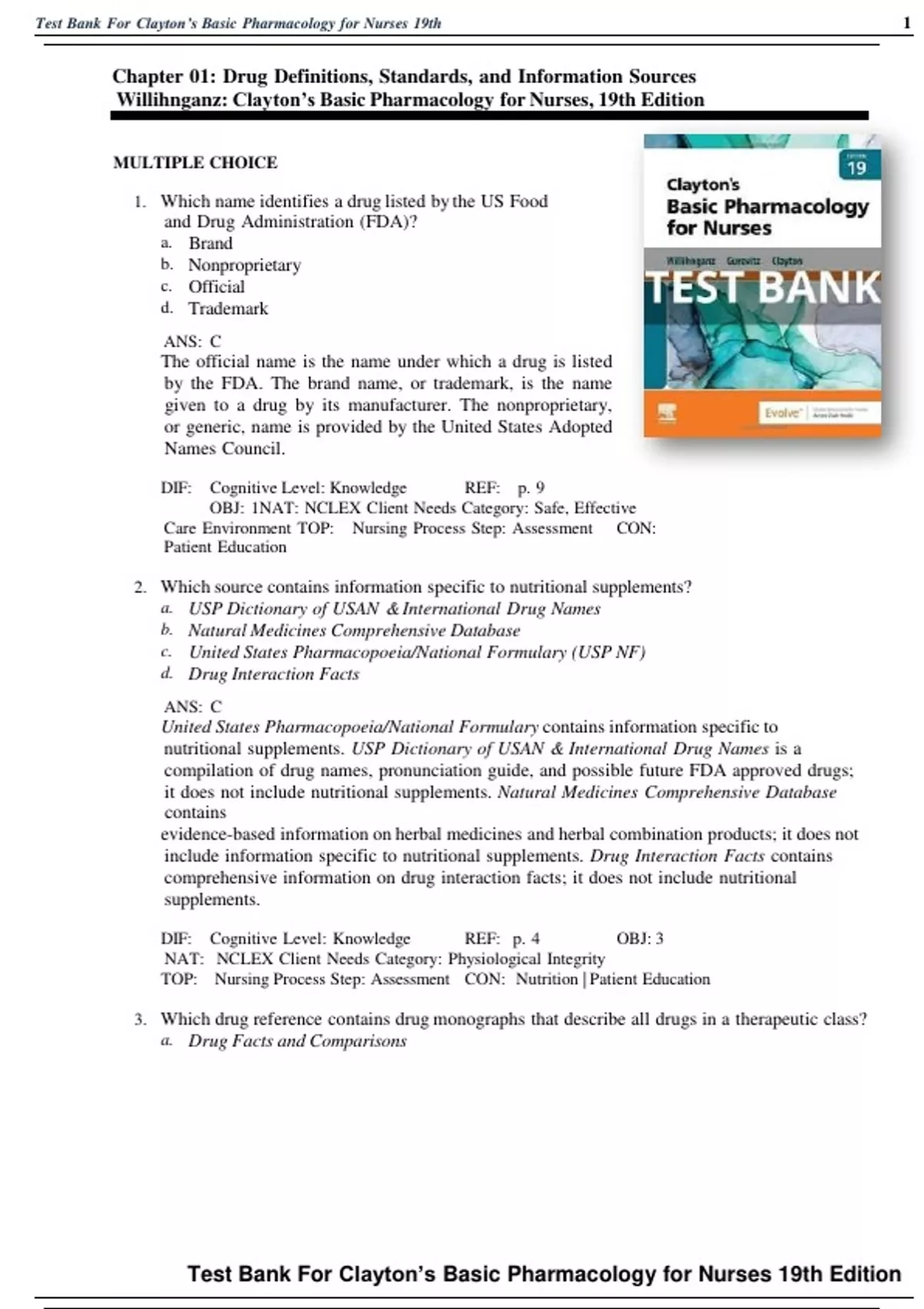 Test bBank bFor bClayton’s bBasic bPharmacology bfor bNurses b19th 1