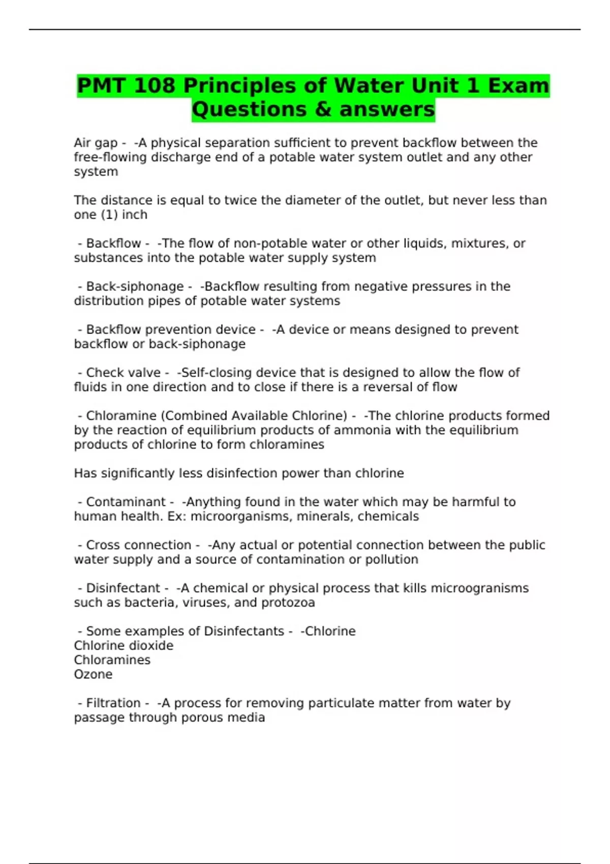 processing such as: Sedimentation, Filtration, Softening, and Disinfection