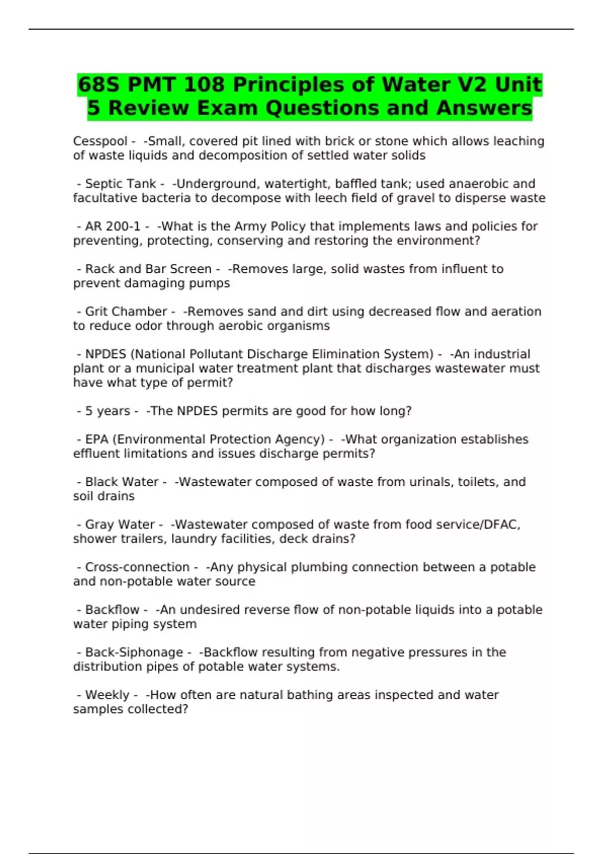 68S PMT 108 Principles of Water V2 Unit 5 Review Exam Questions and Answers